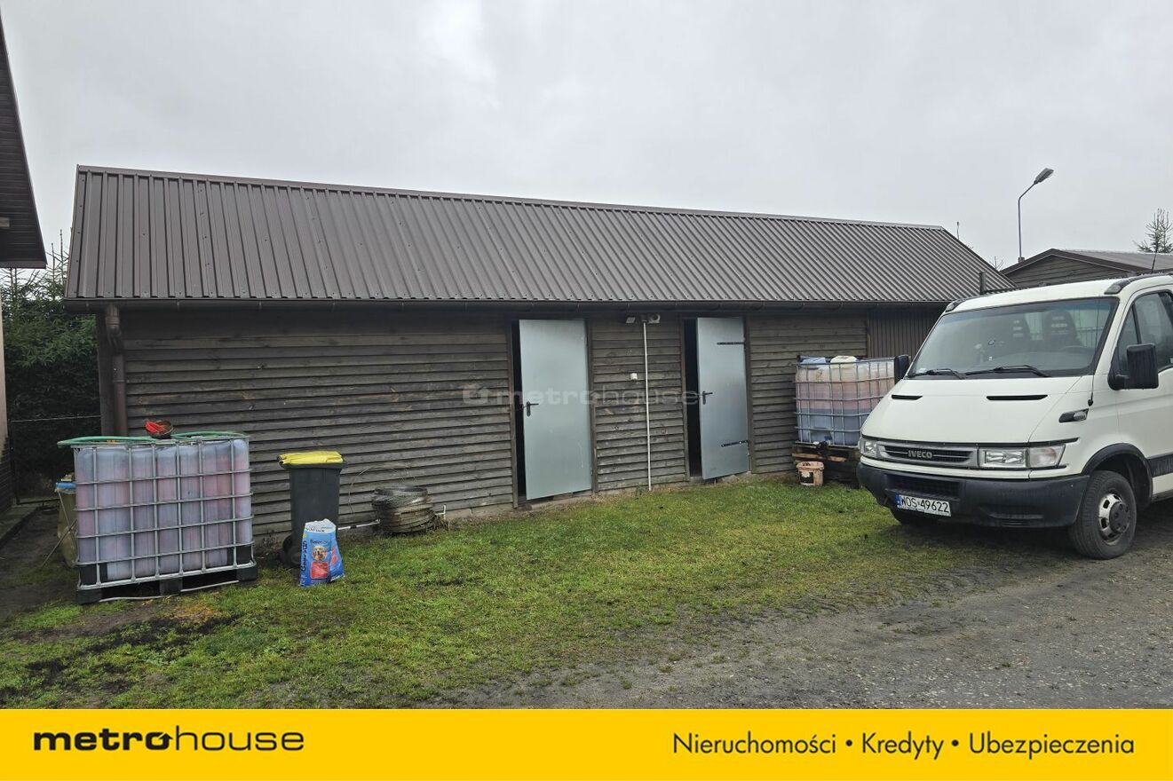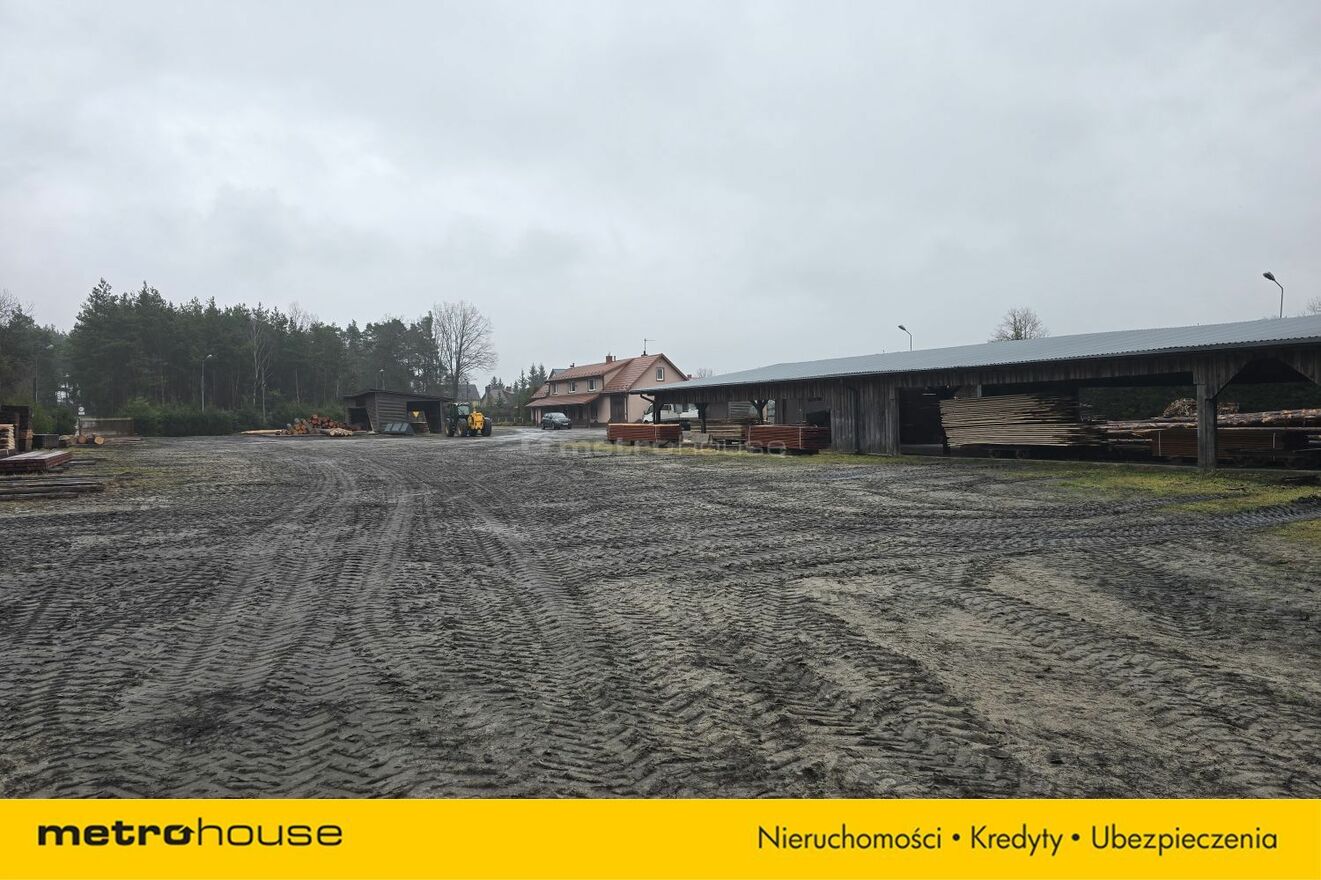 Utwardzony plac manewrowy, budynek biurowo/warsztatowy z komfortowym mieszkaniem na piętrze. 2 wiaty (2 traki taśmowe i pilarka tarczowa wielopiłowa), 2 budynki gospodarcze.